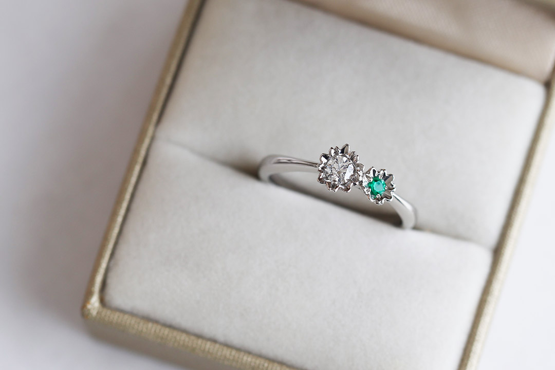 Pt900 WAXデザイン 鏡面仕上げ ダイヤモンド エメラルド