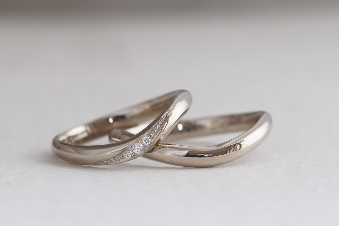 K18ホワイトゴールド 甲丸・波打ち 2.5mm幅 鏡面仕上げ ダイヤモンド K18ホワイトゴールド 甲丸・波打ち 2.5mm幅 鏡面仕上げ